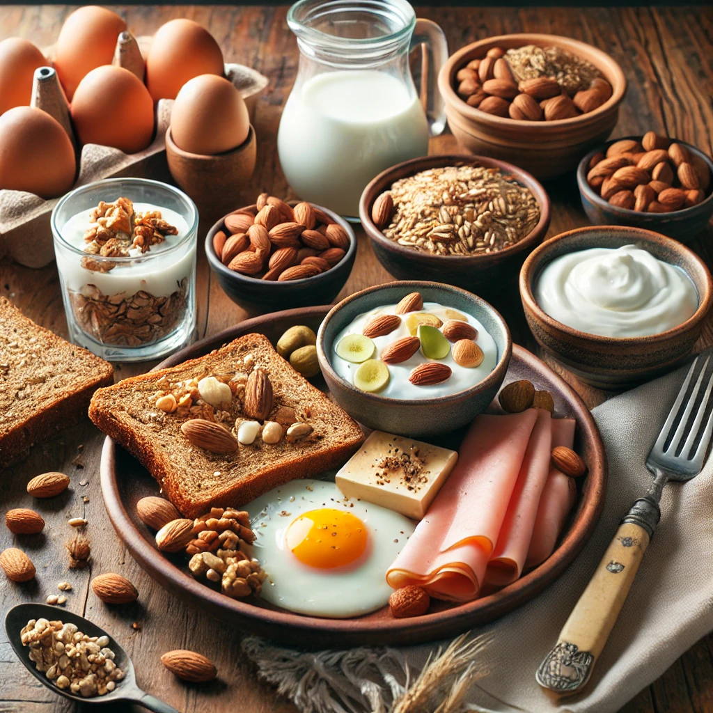 ✅ 단백질: 계란, 요거트, 두부 🥚 ✅ 건강한 지방: 견과류, 아보카도 🥑 ✅ 탄수화물: 귀리, 통곡물빵 🌾